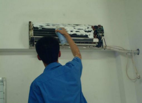 | 石家庄市空调维修师傅给石家庄市用户上门维修清洗空调。 |